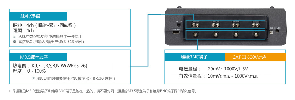 多用途類型的輸入端子可實(shí)現(xiàn)對電壓、溫度、濕度、邏輯以及脈沖等信號的高速同時(shí)測量。
