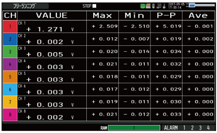 畫面顯示(發(fā)生警報(bào)的通道的測量數(shù)值變紅)