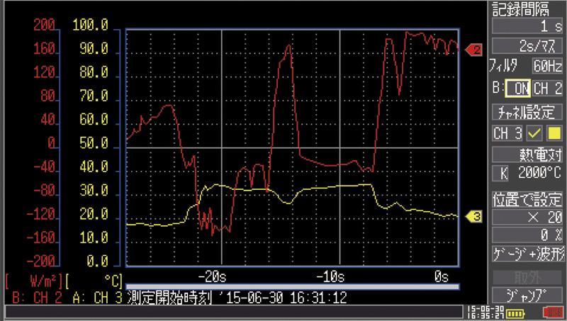 使用無(wú)線熱流數(shù)據(jù)采集儀LR8410-30特制品能夠同時(shí)顯示所測(cè)熱流和溫度的刻度。