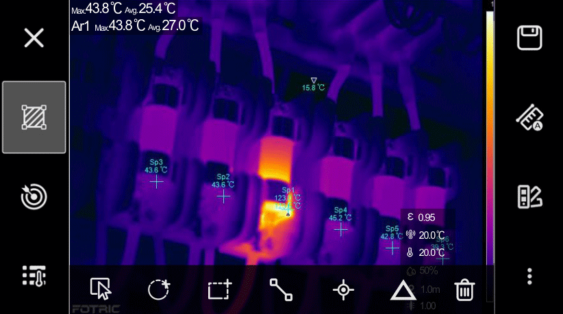 FOTRIC 350系列支持拍攝后熱像圖在本機即時分析。檢測現(xiàn)場對拍攝的數(shù)據(jù)進行專業(yè)分析,避免重復(fù)拍攝,方便快捷。